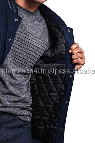 HIVJ47 Vestes de baseball Letterman personnalisées Corps en laine bleu marine avec manches en cuir métallisé et brillant Tissu tissé léger pour l'hiver