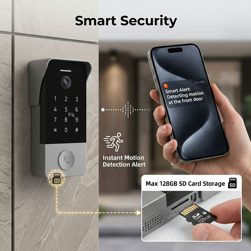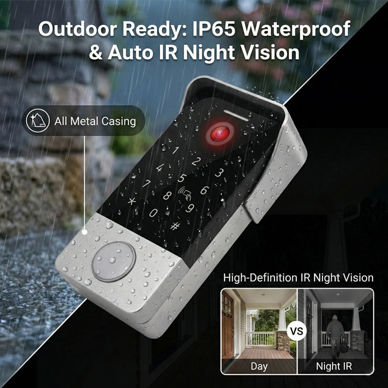 Sonnette vidéo intelligente HIWINK avec capteur de mouvement, mot de passe, carte IC, contrôle d'accès NFC, caméra WiFi Tuya 2MP, IP65