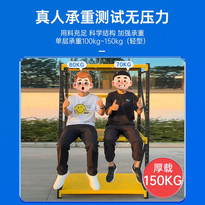 Étagère d'entrepôt HJ-202311 à 4 niveaux en acier laminé à froid robuste bleu avec installation par boucle principale et secondaire, étagères empilables