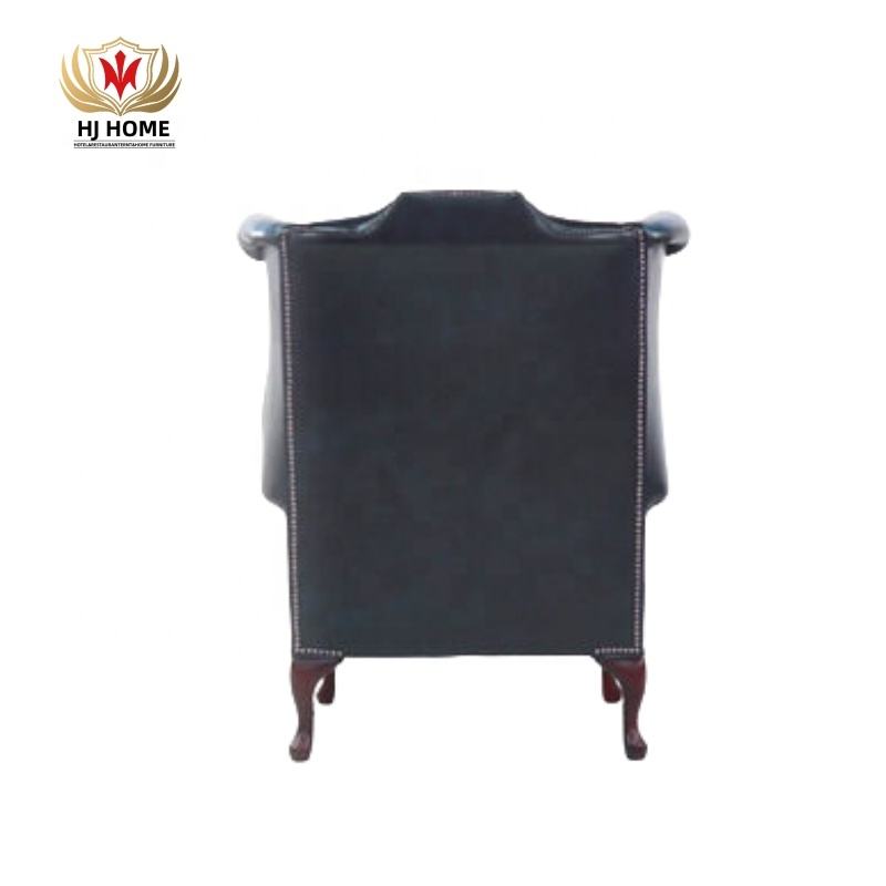 Fauteuil Chesterfield classique à dossier haut et à accoudoirs HJ HOME avec pieds en bois apparents, style Queen Anne