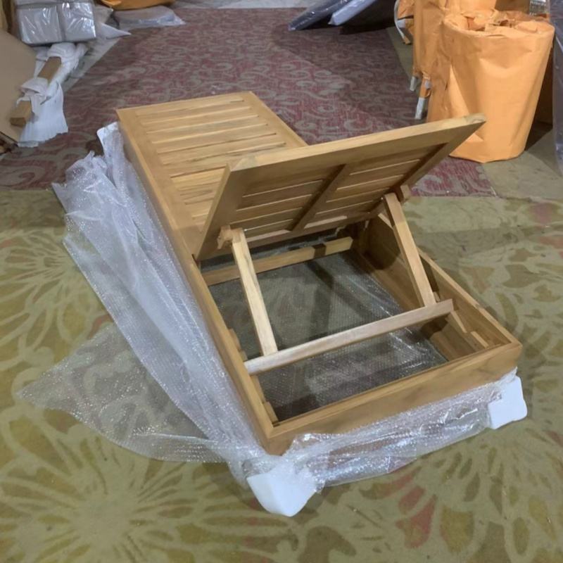 HJ HOME Modern Pool Chaise Lounge Teak Wood Frame Sun Lounger Garden Sunbed Outdoor Paito Black Beach Lounger on Sale