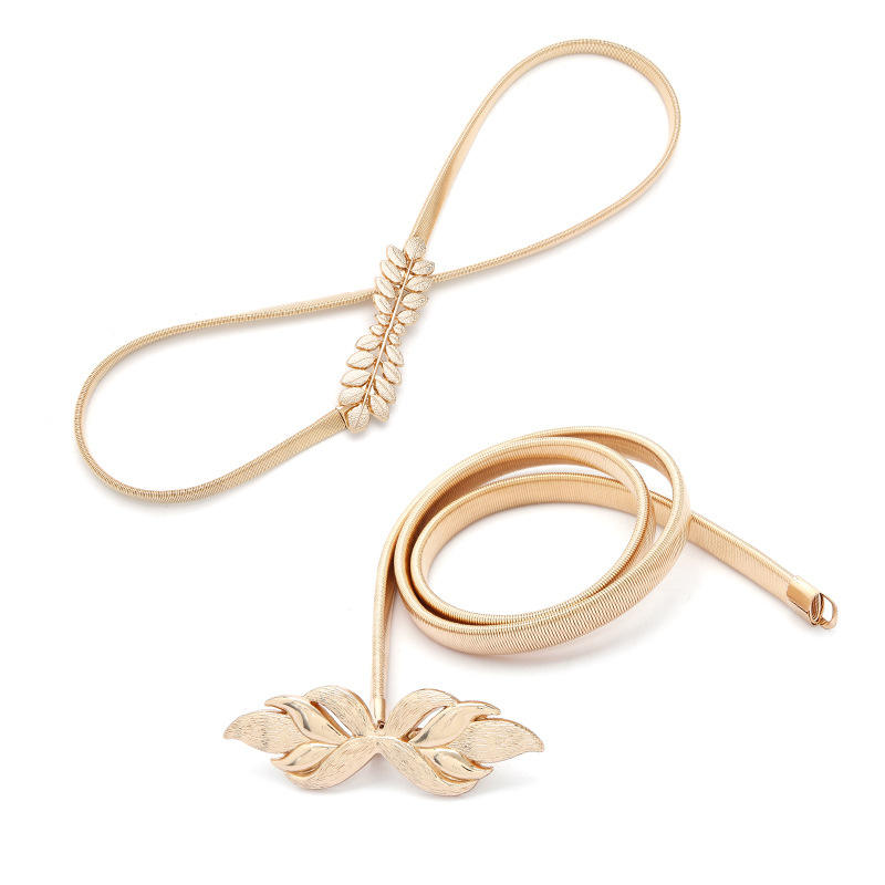 HJ Tree Branch Buckle Women's Premium Stretchy Gold Belt Chain for Dress Coat Decoration FM-836834