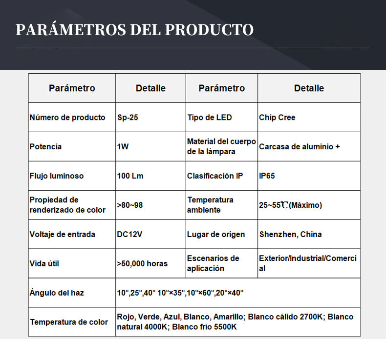 2700K (blanc chaud doux), 4100K (blanc neutre), 5000K (lumière du jour)La température de couleur (le TDC)