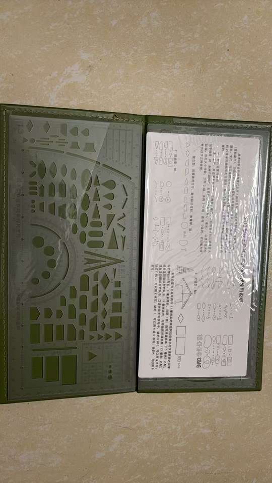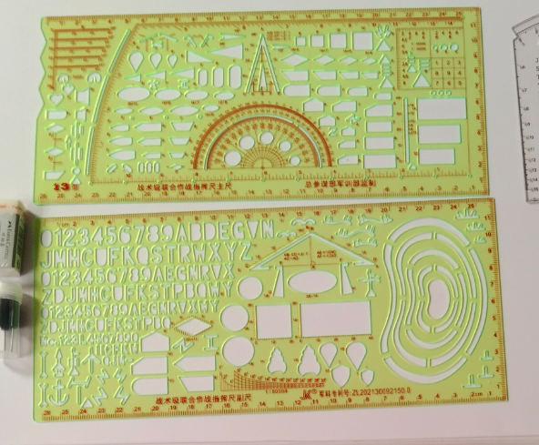 HKSF 01 Outils de dessin cartographique en plastique, rapporteurs et règle vert transparent avec étui vert, outils de papeterie
