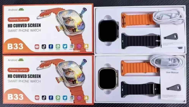 Montre connectée HKSF B33 avec caméra intégrée, écran incurvé HD, montre-téléphone intelligente