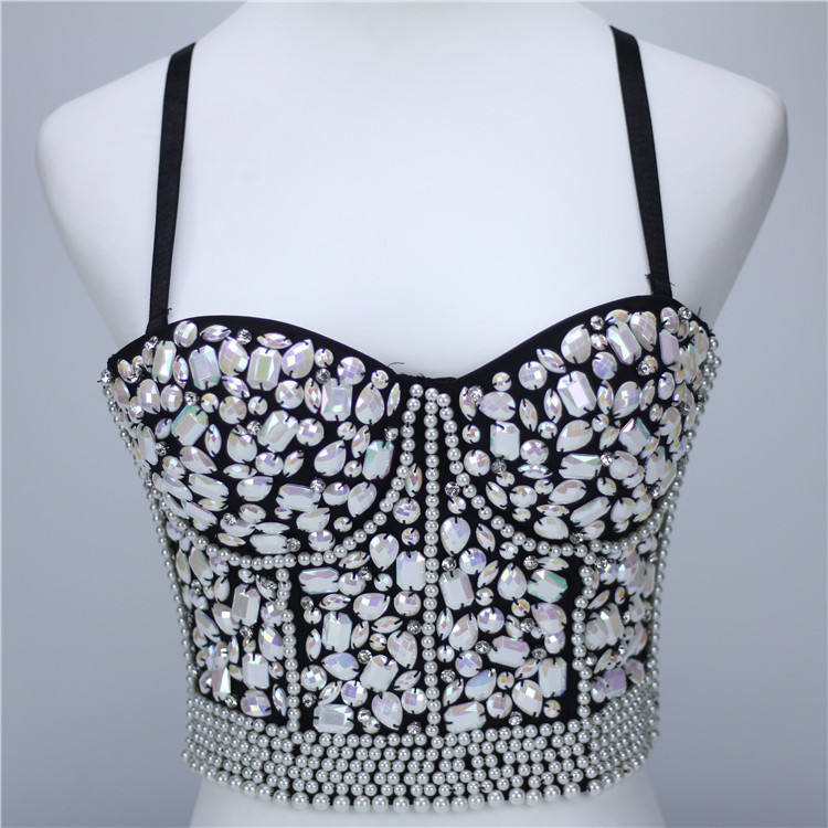 HLC RTS Sparkly Diamond Women Vest Lingerie Crystal Bustier Rhinestone Bra Crop Top Party Corset for Nightclub Party Decoration