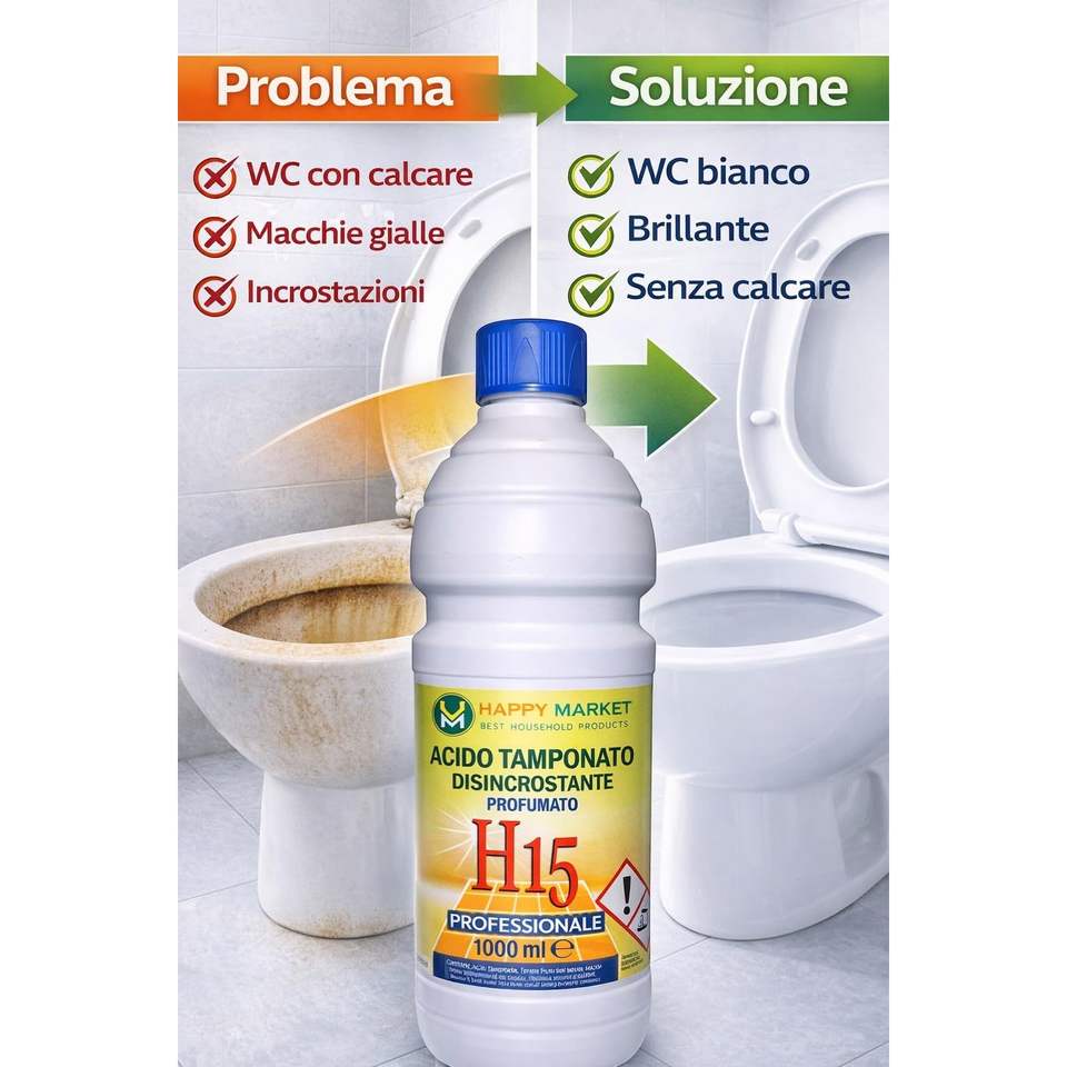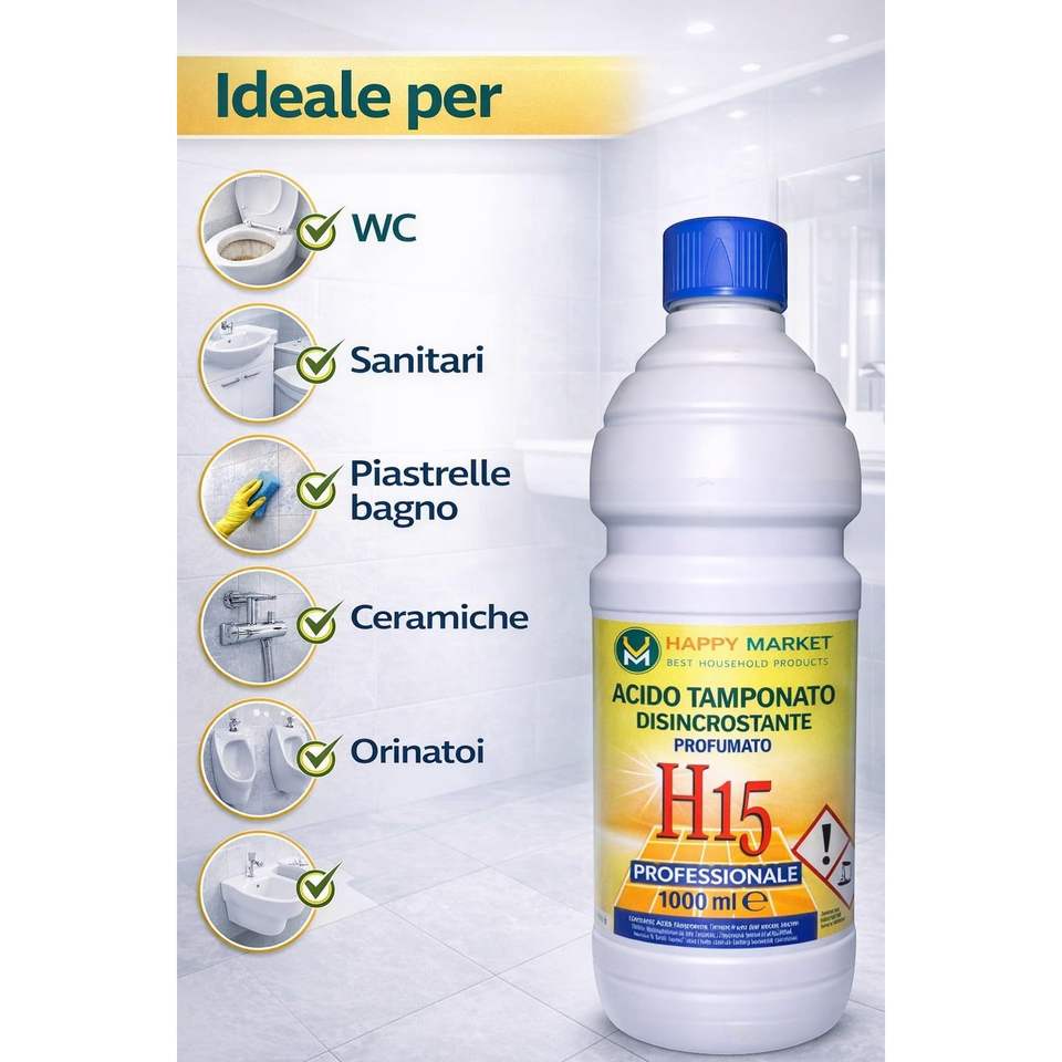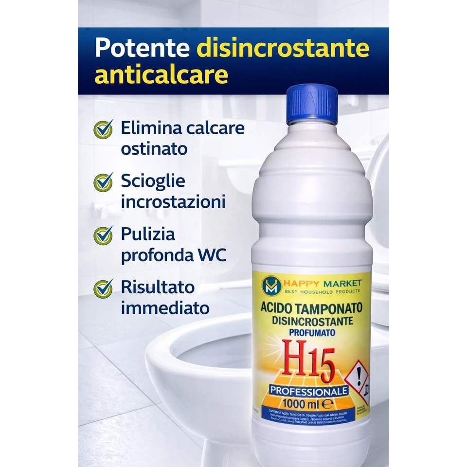 HM H15 Détartrant WC liquide acide parfumé 2 x 1L (2L) – Puissant décapant de calcaire pour sanitaires et céramiques