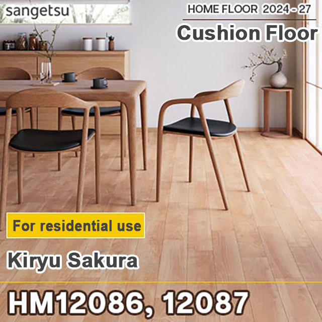 HM12086 HM12087 Kiryuzakura (wood Grain) Sangetsu Residential Cushion Flooring, Antibacterial, Made in Japan (20M)