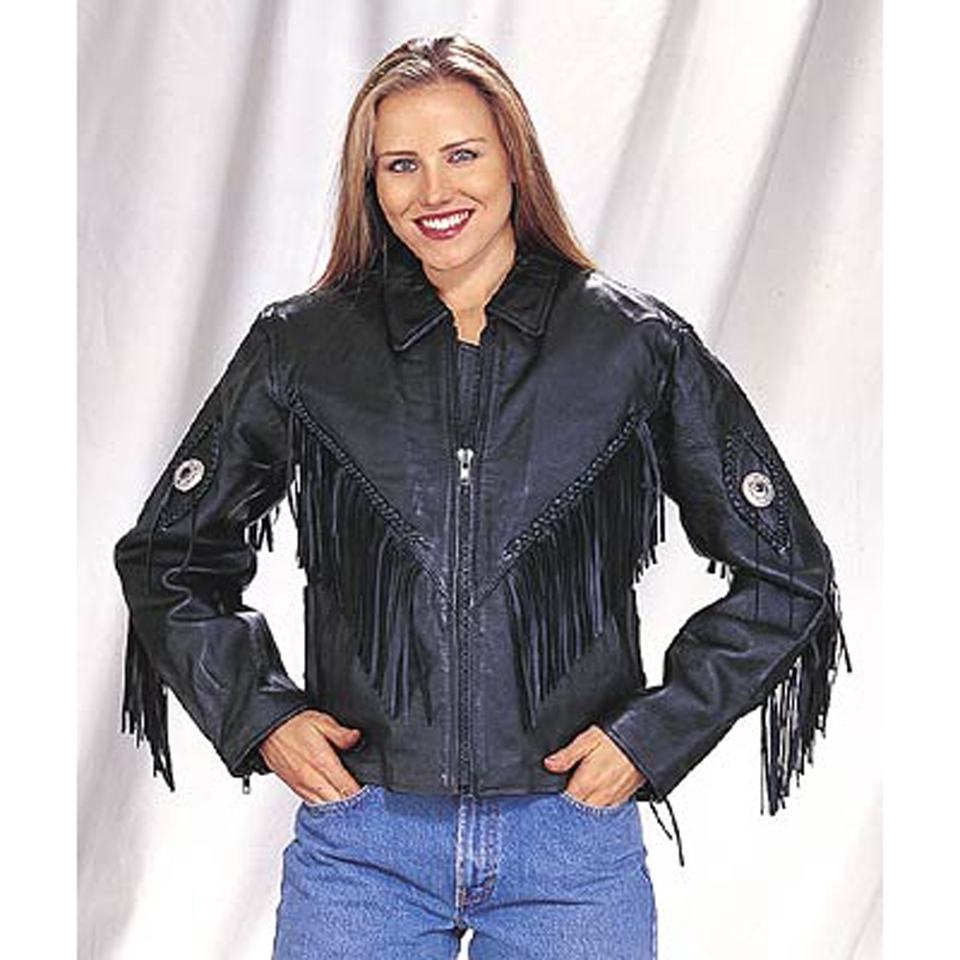 HMB-0319A WOMEN LEATHER JACKET BASIC MOTORCYCLE COAT BLACK BRANDO STYLE FRINGES JACKETS