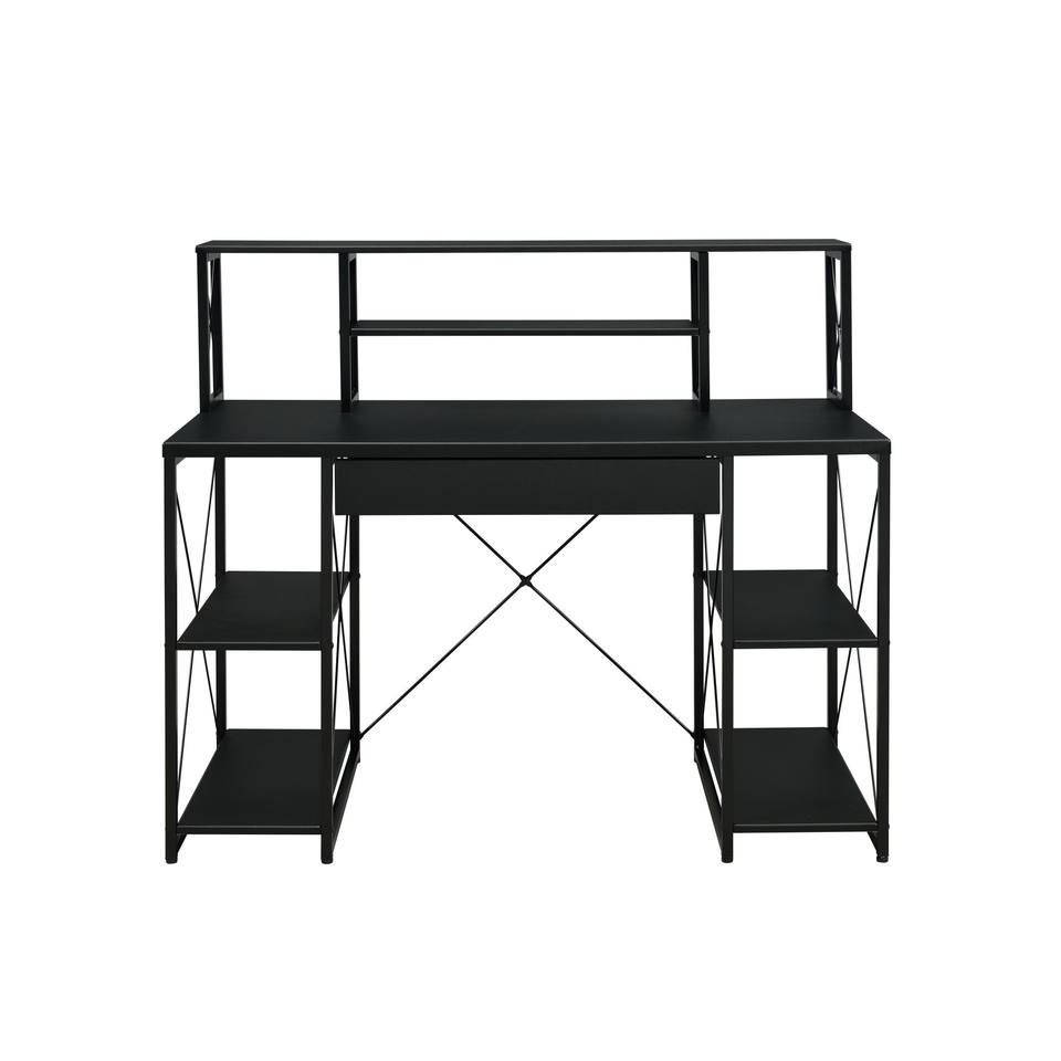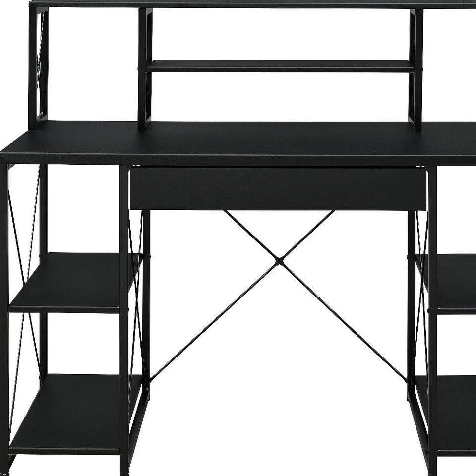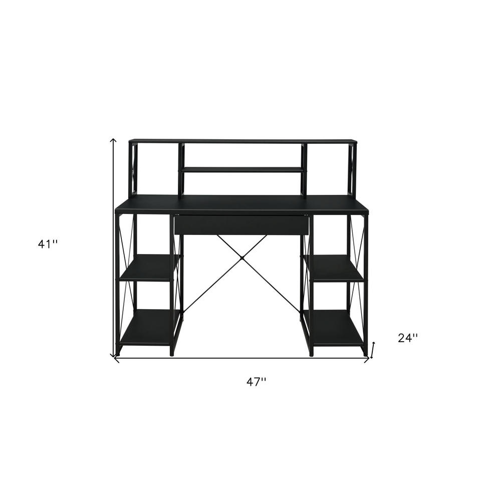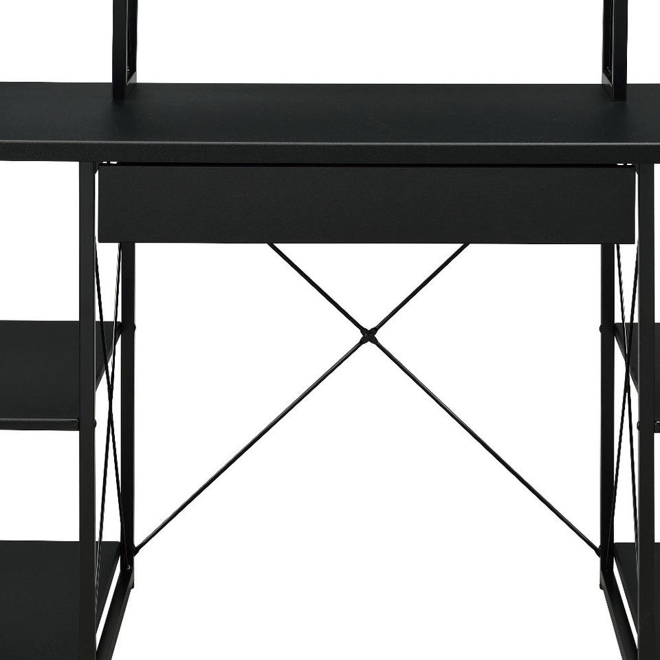 Bureau d'ordinateur simple HMS 47 pouces avec hauteur réglable, étagère en métal noir et bois, tiroir, fonction pliable, table d'ordinateur
