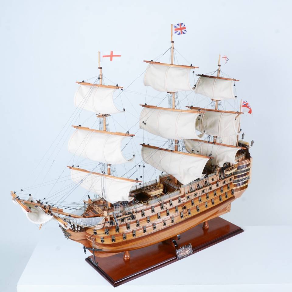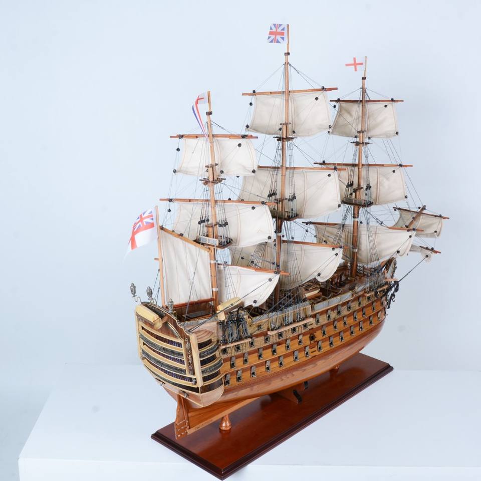 HMS Victory Large 80 cm Curved Wooden Replica Handcrafted Nautical Model Ship Display Stand Painted Antique Art Home Decorations