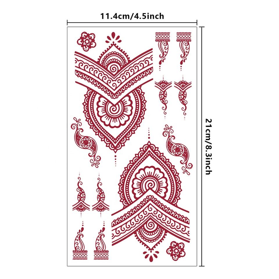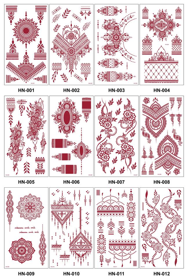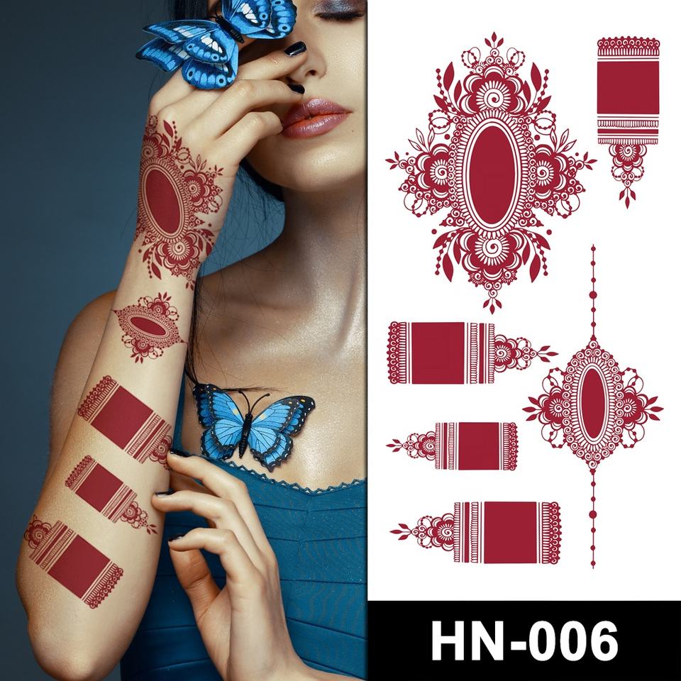 HN 500 Motifs de tatouage en papier transfert pour boutique, motif dentelle bordeaux sexy et érotique, autocollant de tatouage pour bras et doigts