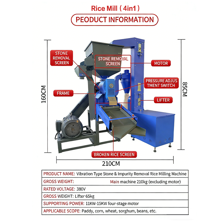 HN QDMECH Machine de traitement commerciale pour le décorticage du maïs, l'élimination des impuretés, le décorticage du paddy, le polissage du riz et le moulin à riz