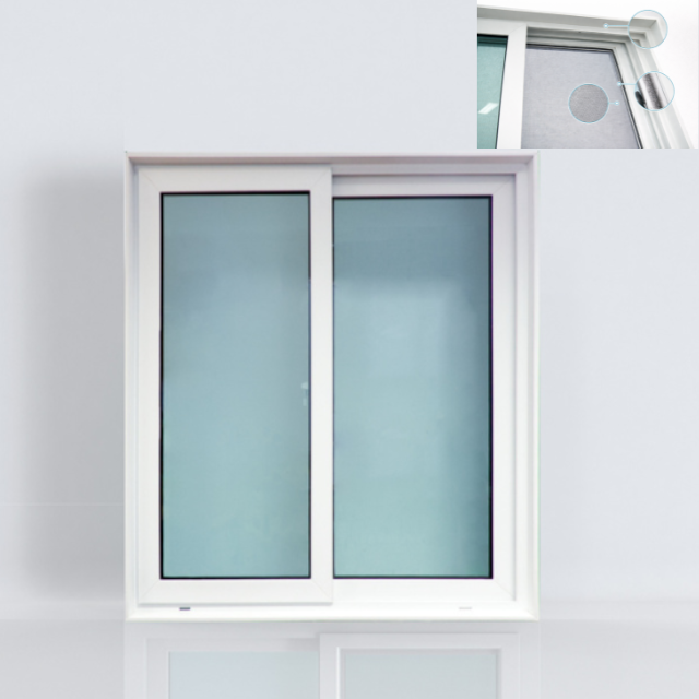 Fenêtre coulissante HOFFEN PLUS en PVC 120x110 blanche avec vitrage en filet, insonorisée, étanche et isolante thermiquement