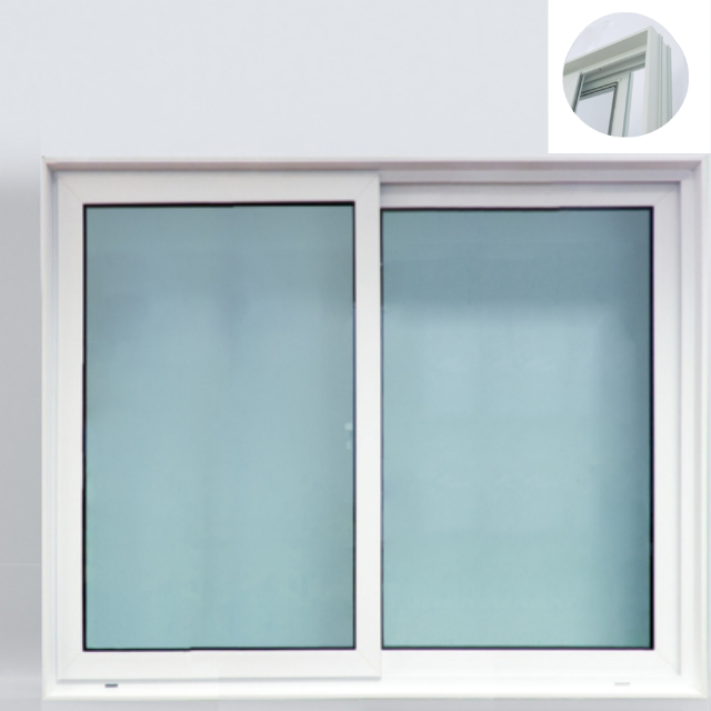 Fenêtre coulissante HOFFEN PLUS en PVC 150x110 blanche avec vitrage en filet, insonorisée, étanche et isolante thermiquement