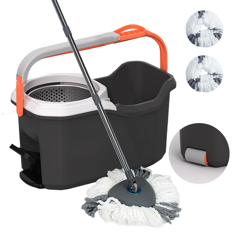 Ensemble de serpillière magique rotative HOLAMOPA 360 avec seau, panier en acier inoxydable amovible, grande roue et pédale pour un nettoyage facile des sols