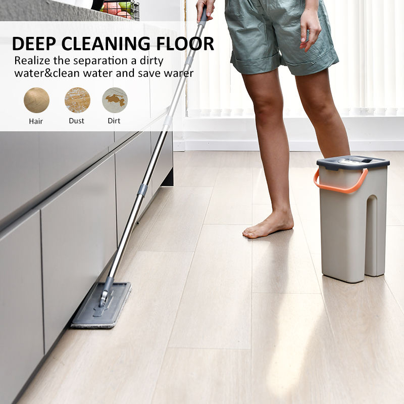 Tampon de vadrouille en microfibre avec poignée rotative à 360 degrés Panier rectangulaire en plastique Accessoire de nettoyage à domicile en différentes couleurs