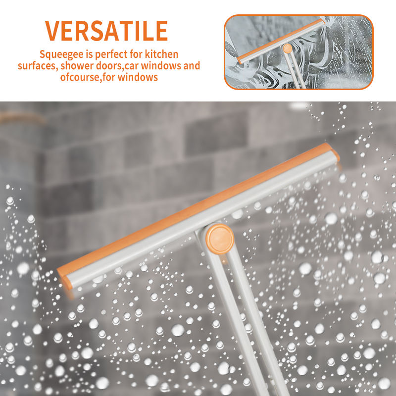 Raclette de douche en silicone à manche en aluminium de 120cm avec poteau en acier inoxydable en caoutchouc souple et plastique pour le nettoyage
