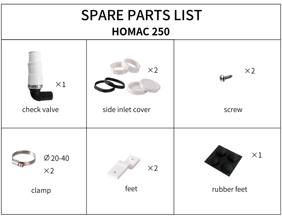 Pompe à eau usée verticale HOMAC 250 compacte pour évier de douche, à vis horizontale, alimentée par l'électricité, pour utilisation en sous-sol