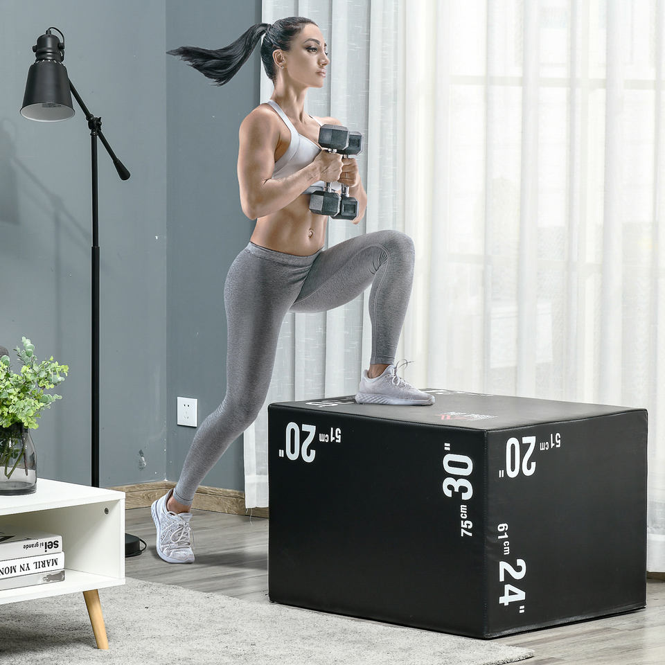 HOMCOM Boîte plyo 3-en-1 avec 3 hauteurs, boîte de saut plyométrique capacité 120kg, 75x51x61cm, noir