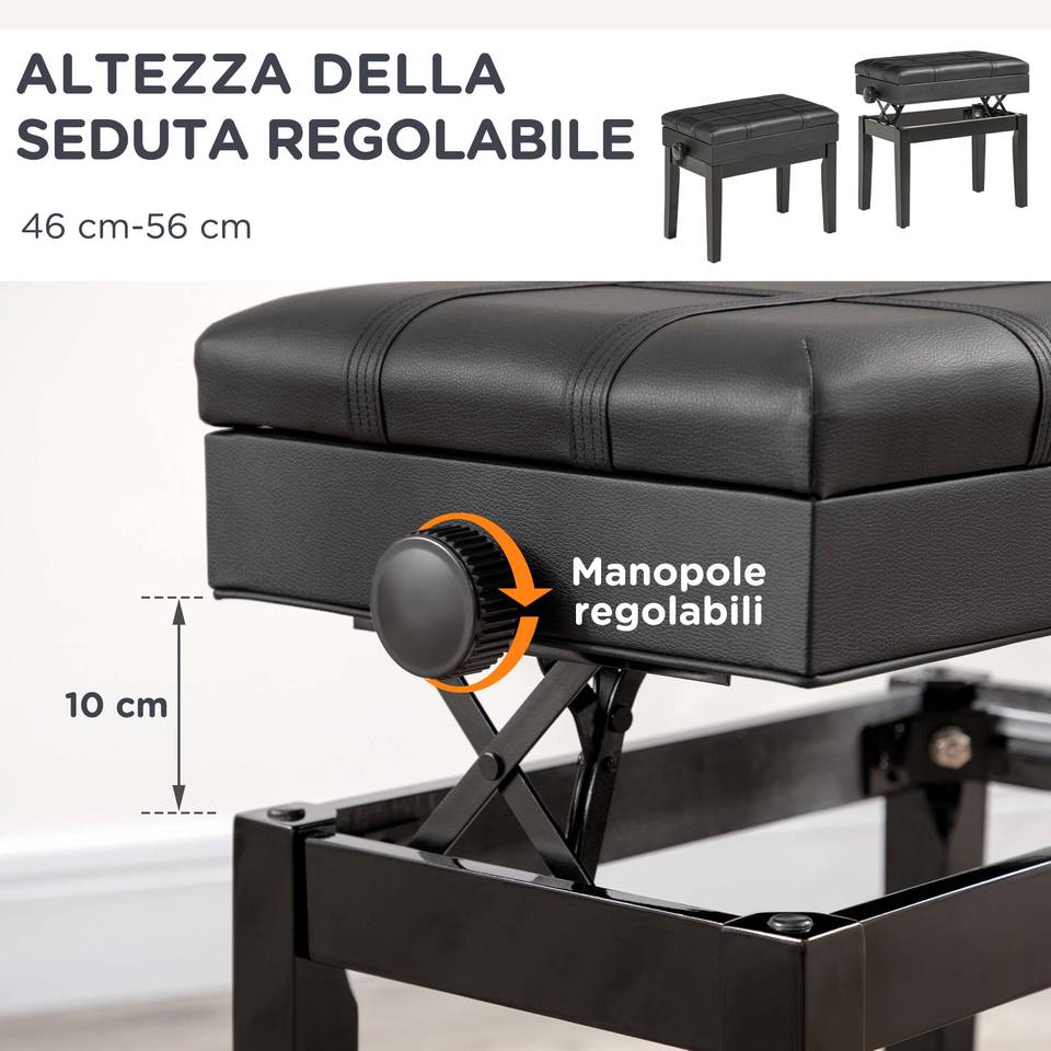 Tabouret de piano réglable en hauteur HOMCOM avec boîte de rangement en bois et simili cuir, 63x35x46-56cm, noir
