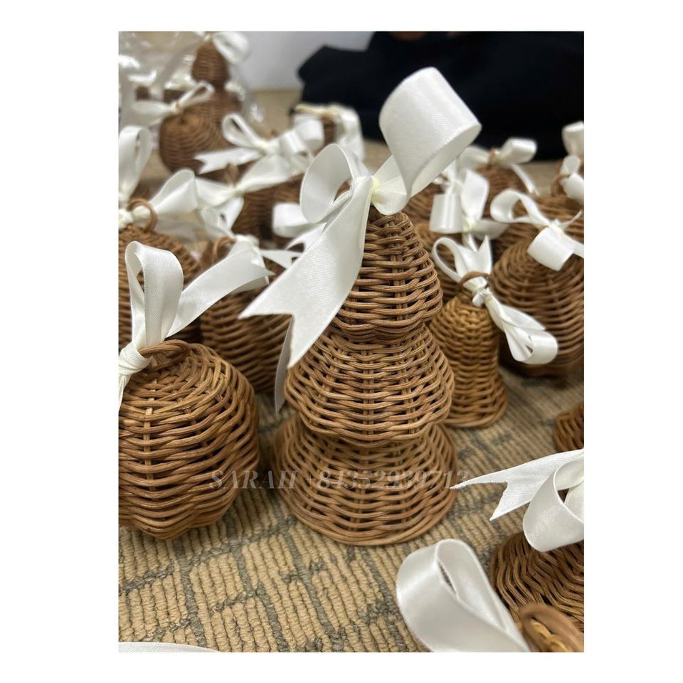 DÉCORATIONS POUR LA MAISON ORNEMENT DE L'ARBRE DE NOËL: OSIER NATUREL RÉTRO VINTAGE, CLOCHE EN ROTIN TISSÉE À LA MAIN, VENTE EN GROS.