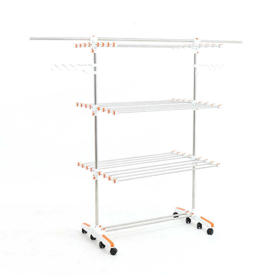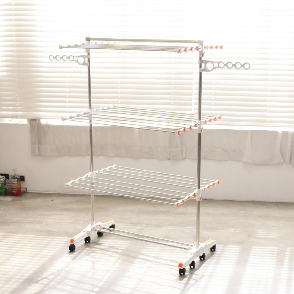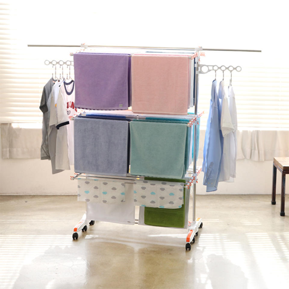 Dispositif:Structure pliable, Conception verticale à 6 niveaux, Grande capacité de séchage, Roulettes avec blocage, Stockage peu encombrant, Cadre métallique stable, Facile à déplacer et à utiliser