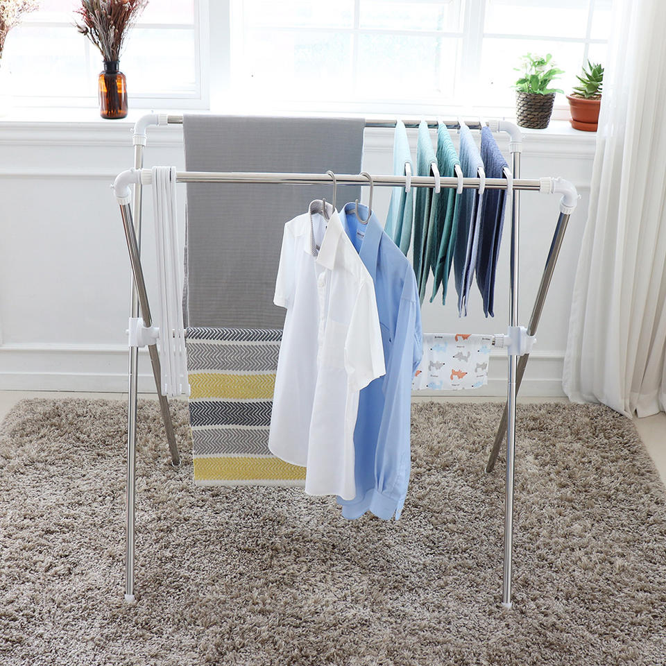 Conception pliable, Cadre stable en forme de X, Structure peu encombrante, Léger et portable, Large zone de séchage, Installation et stockage faciles, Utilisation de la buanderie intérieure