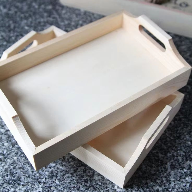 Plateau de service fait main avec poignées, plateau petit-déjeuner en bambou, plateau en bois, plateau de service décoratif pour manger