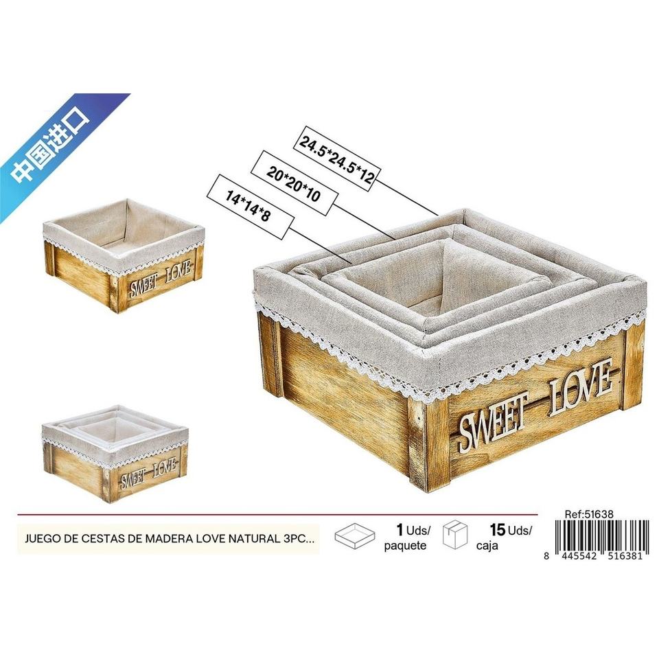 HOME Natural Wooden Basket Set - Decorative Storage