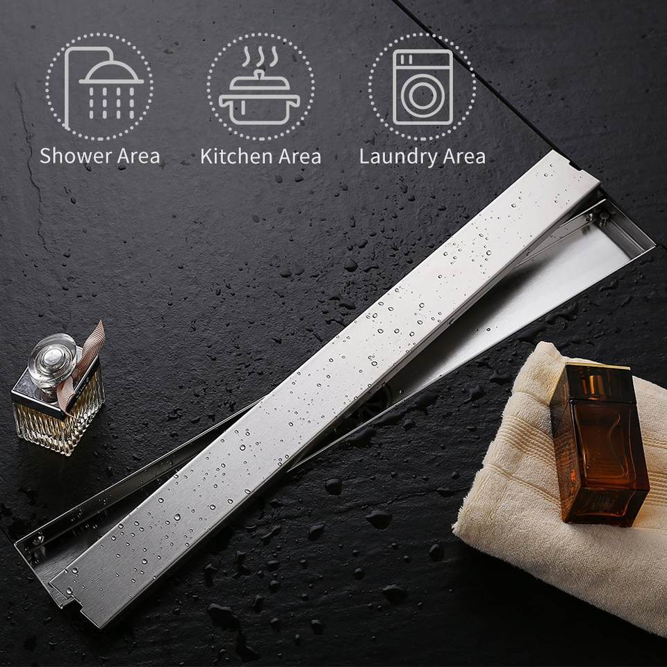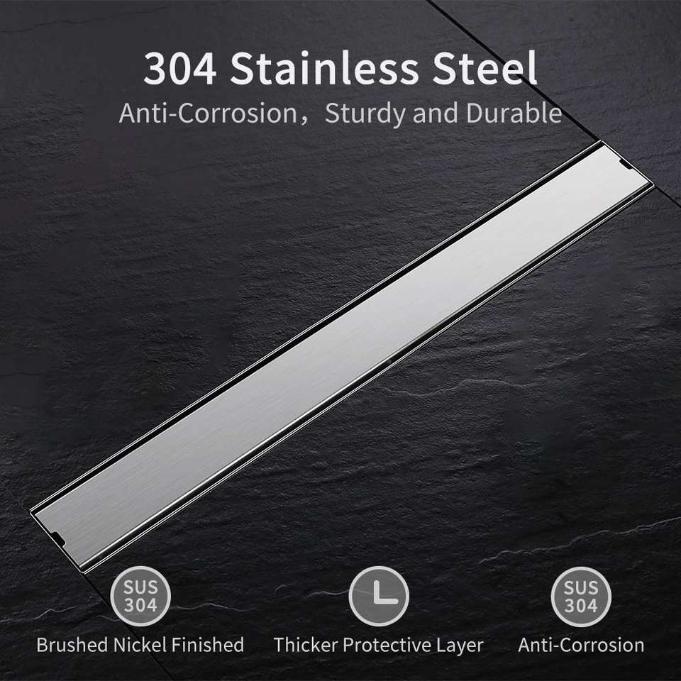 HOMEDEC Ventes Flash Grille de sol linéaire encastrée pour douche, en acier inoxydable, avec sortie latérale, finition nickel brossé