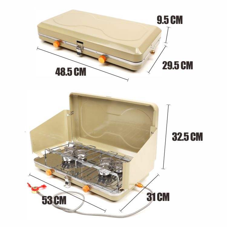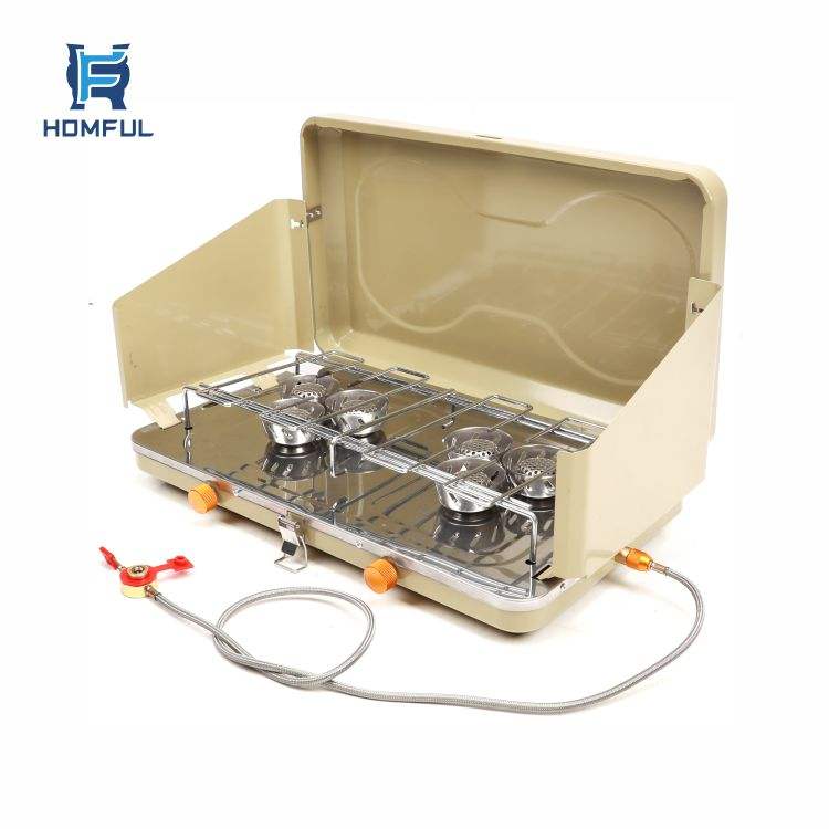 HOMFUL Outdoor Windproof Two Burner Gas Stove Stainless Steel Folding Camping Stove