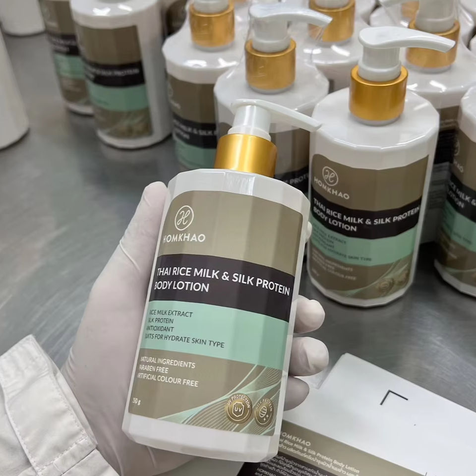 Lotion au lait de riz et aux protéines de soie HOMKHAO OBM Thaïlande 250G Ingrédients naturels Sans paraben Sans colorant artificiel