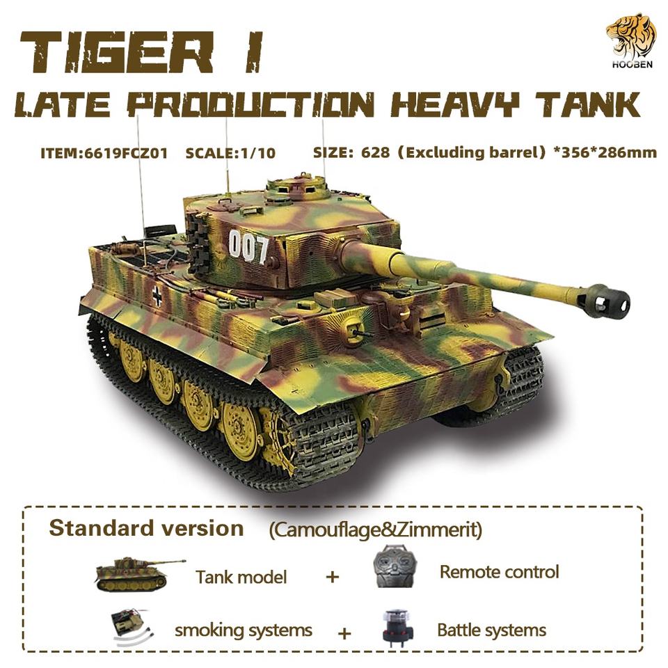 HOOBEN 1:10 RC RTR TANK TigerI Production tardive Wittmann Heavy Tank WORLD WAR II RADIO CONTROL FULL FONCTION AFV Truck