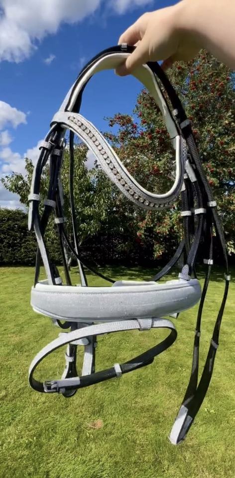 Bridon en cuir personnalisé pour l'équitation, fournitures équestres, bridons anatomiques blancs scintillants, rênes en cuir rembourrées et douces