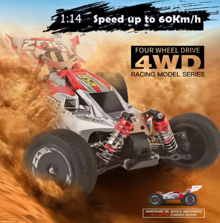 Voiture RC HOSHI haute vitesse 60 km/h, échelle 1:14, 144001, 2.4G, 4 roues motrices, avec carrosserie robuste, câble USB, Wi-Fi, chargeur inclus, cadeau de Noël
