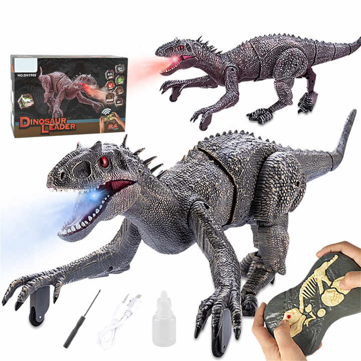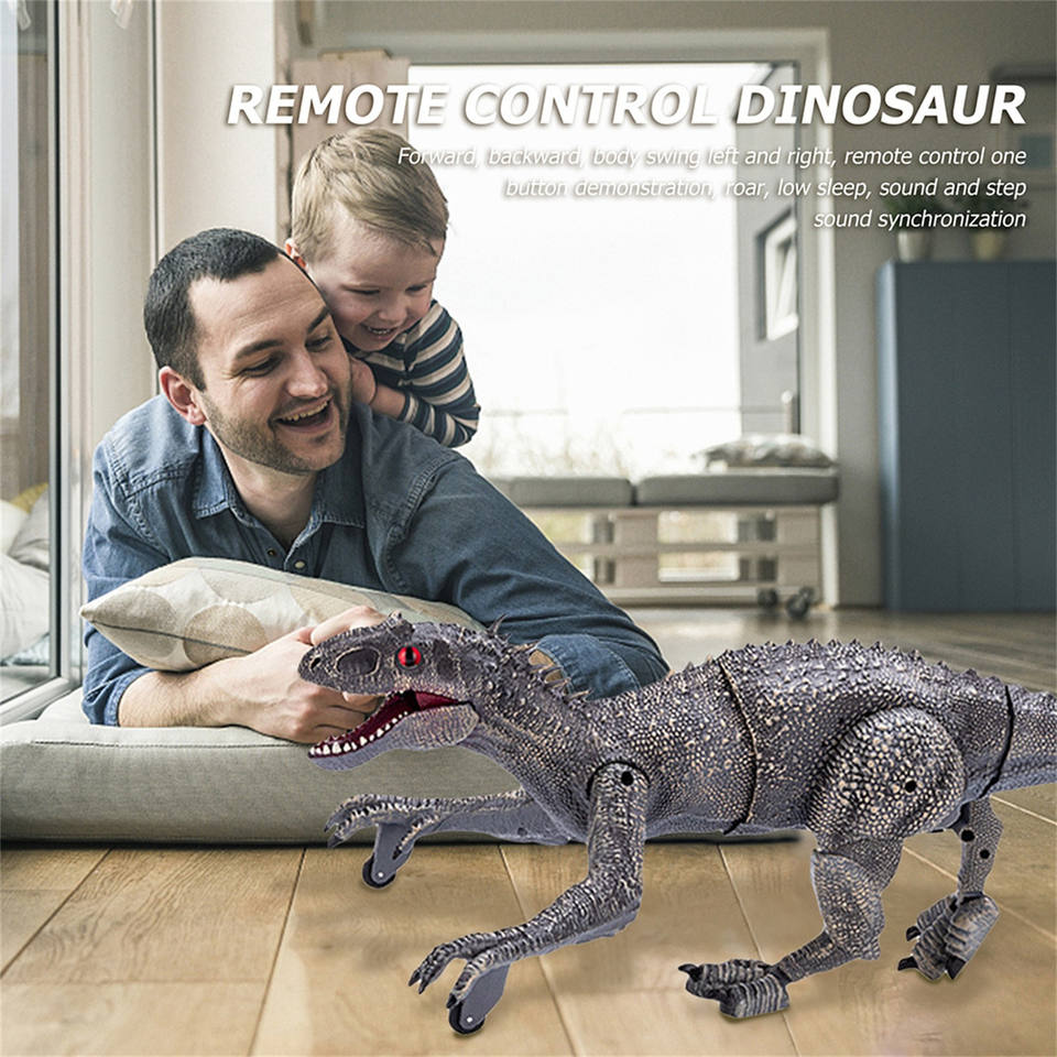 HOSHI jouets de dinosaure télécommandés pour enfants, marche électrique Jurassic RC dinosaure Simulation Velociraptor Led lumière rugissante Spay brouillard