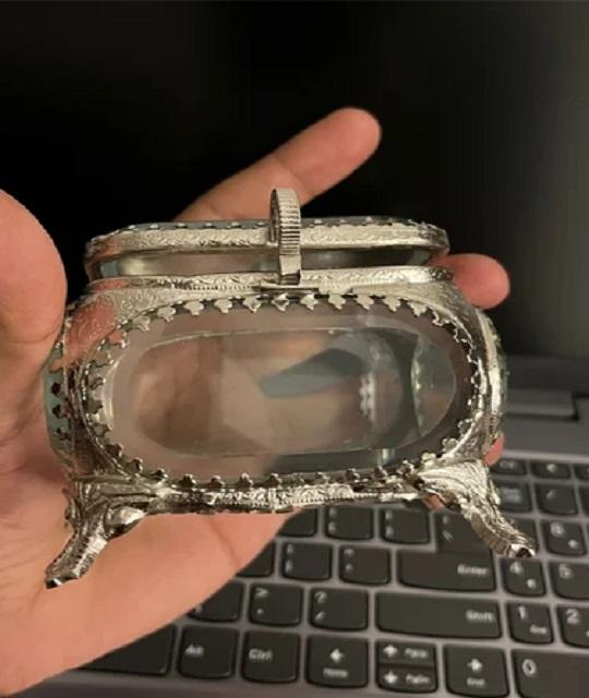Organisateur de maquillage décoratif géométrique bon marché, mini boîte à bijoux hexagonale en verre en laiton pour cadeau
