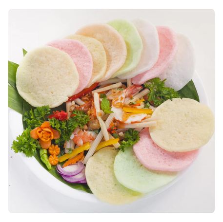 Material:Tapioca Starch, Shrimp, Sugar, Salt, Flavor Enhancer, Foaming Agent
