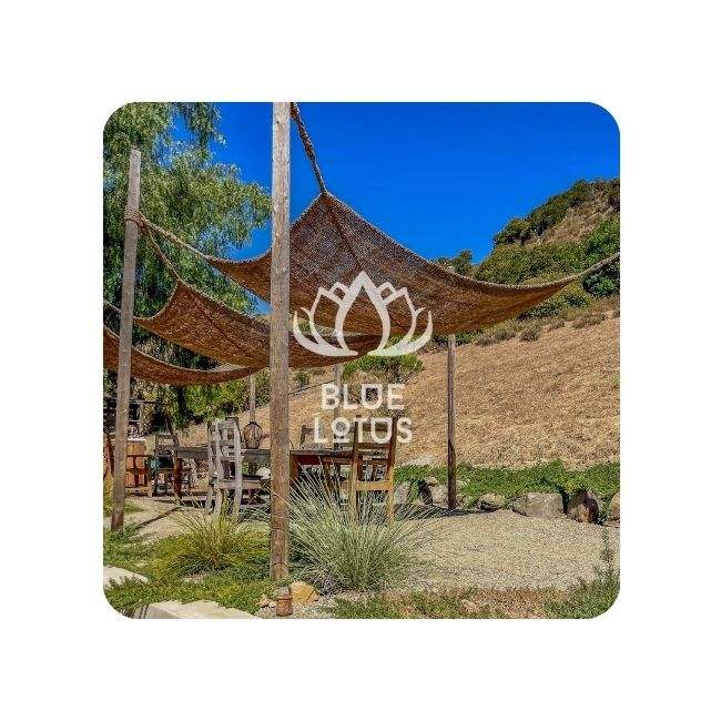 Voile d'ombrage en fibre de coco bleu Offre Spéciale Lotus 2025 Auvent extérieur durable Fibre de coco naturelle pour balcon jardin patio et terrasse