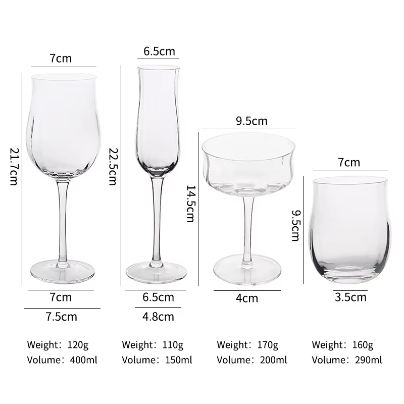 Verres à champagne cannelés Offre Spéciale faits à la main cannelés à rayures verticales Flûtes Ensemble de verres à vin rouge en forme de tulipe Verre à vin à jante dorée