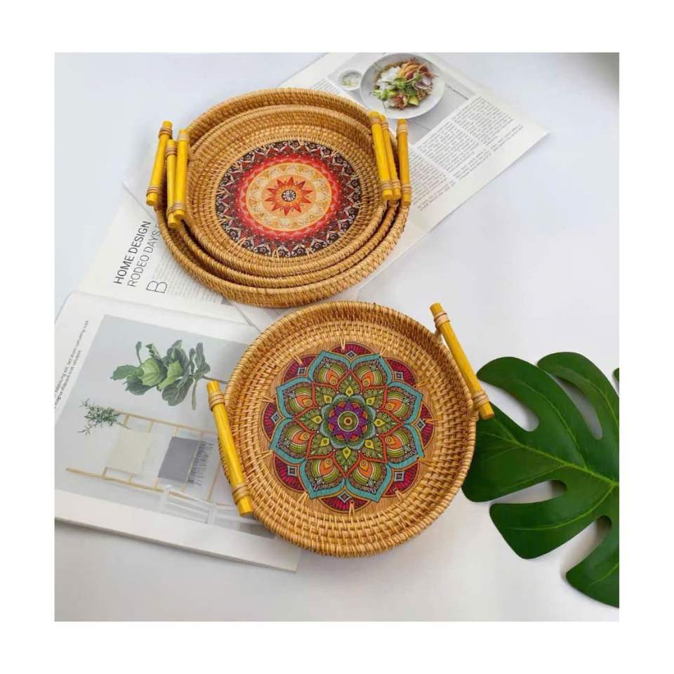 Plateau de service en rotin Offre Spéciale avec incrustation de nacre VENTE au meilleur prix, vente en gros, échantillon gratuit