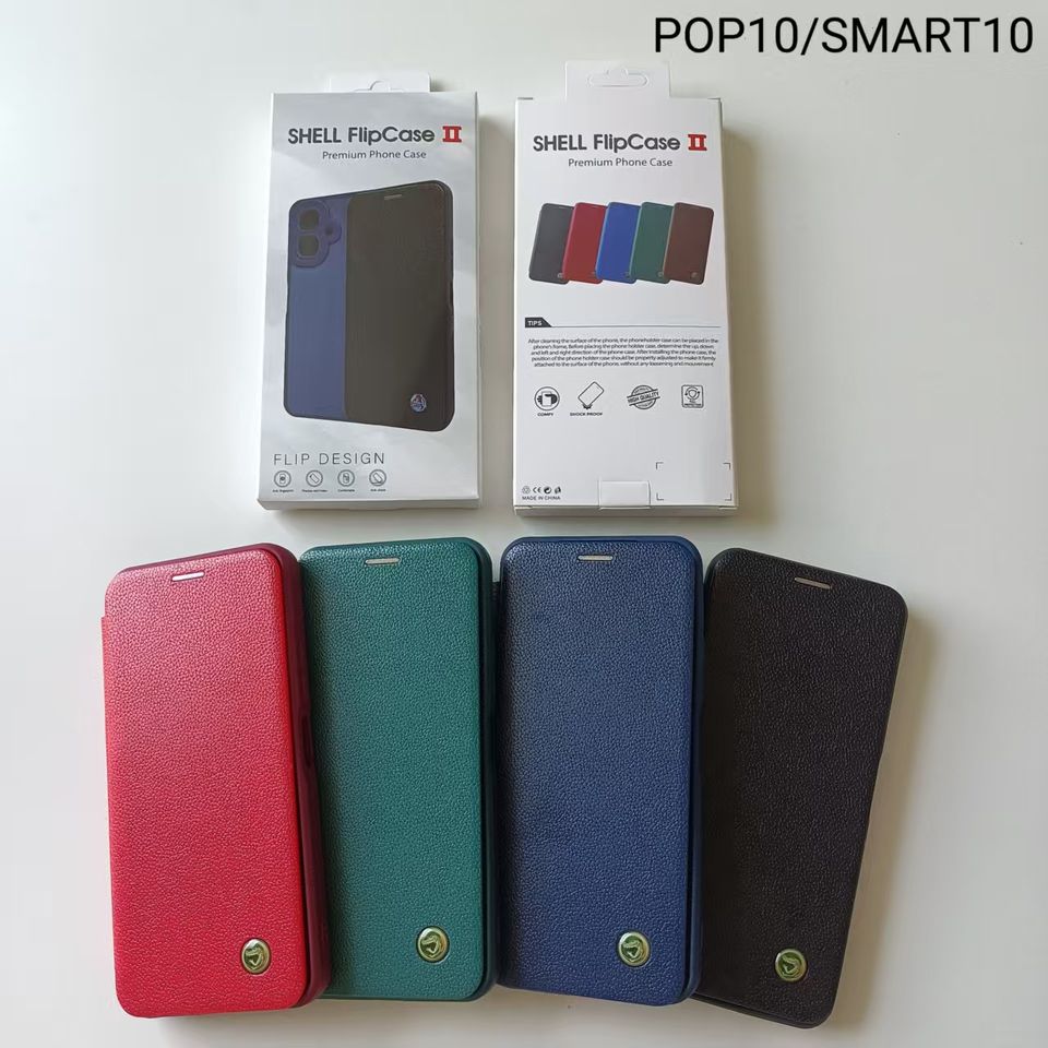 Étui en cuir artificiel gaufré Shell II, simple, pliable, pour téléphones TECNO/Infinix, protection de l'objectif - Vente Flash