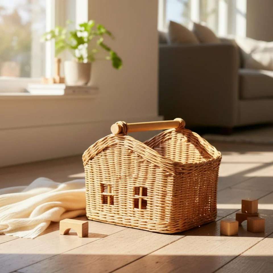 Panier de rangement multifonctionnel en rotin avec poignée, mignon et durable, idéal pour la décoration de la chambre d'enfant - Vente chaude, prix direct usine