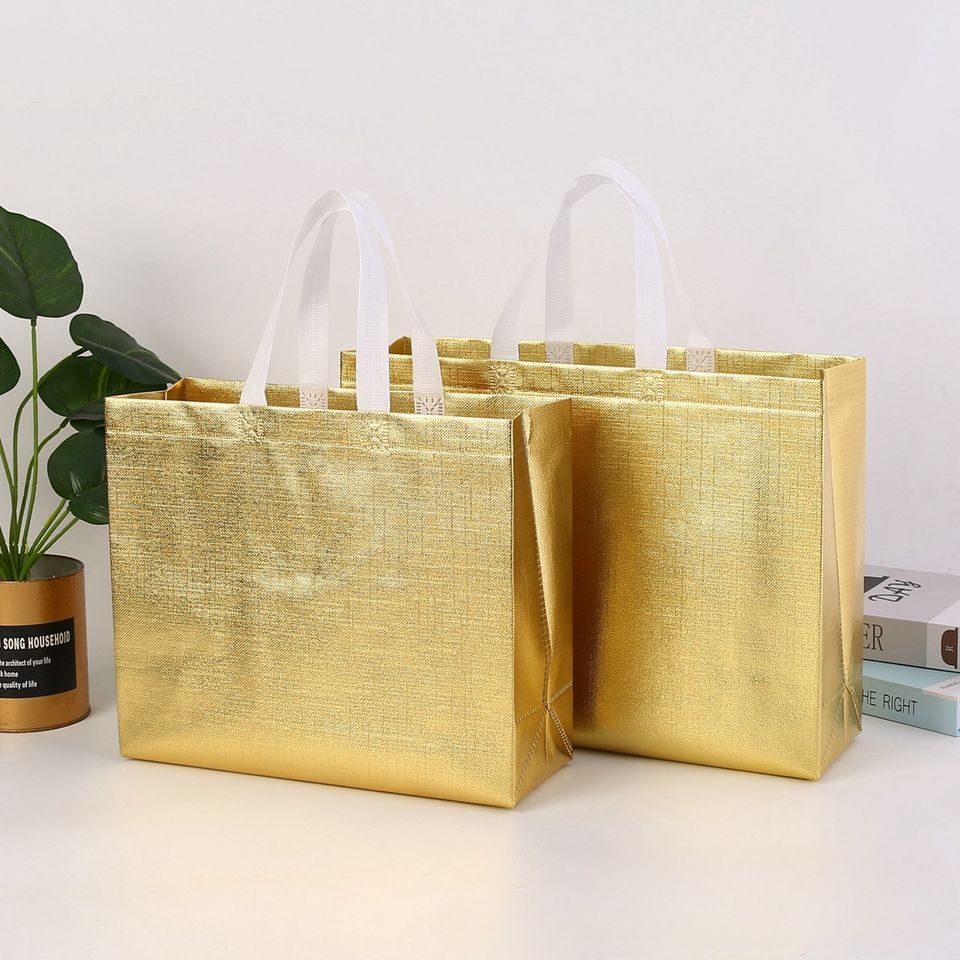 Hot Sale Customized Shiny Metallic Laminated Non-Woven Gift Luxury Reusable With Glossy Cartoon Pattern