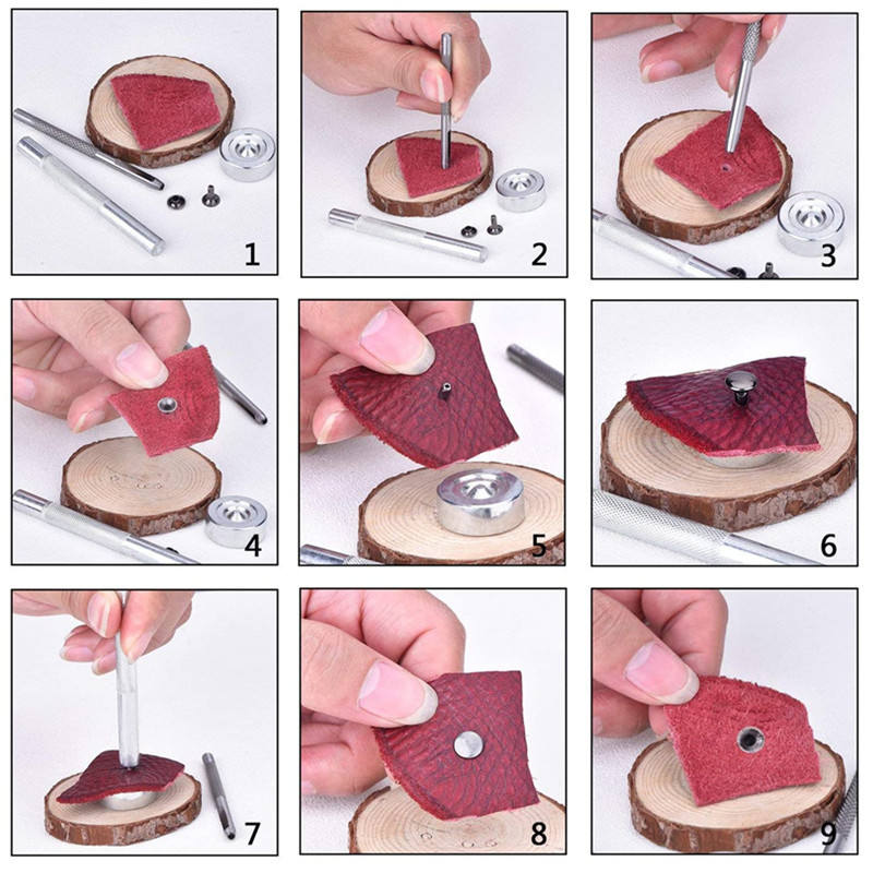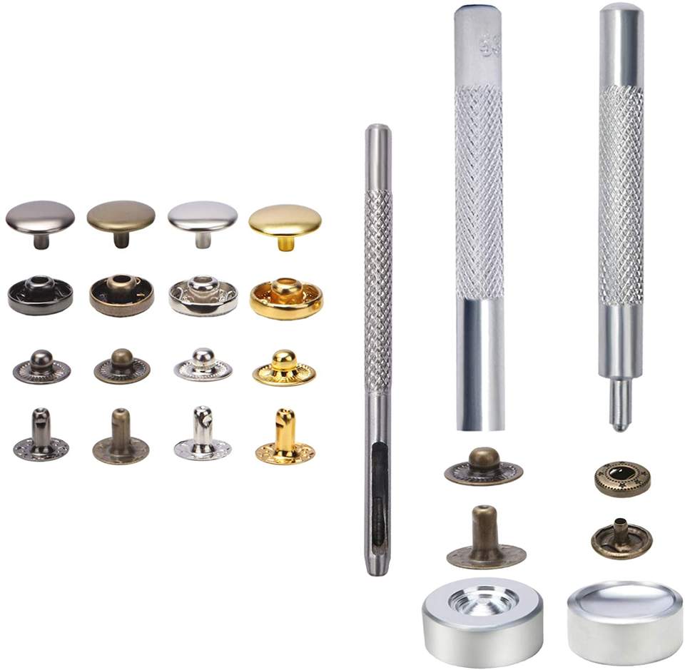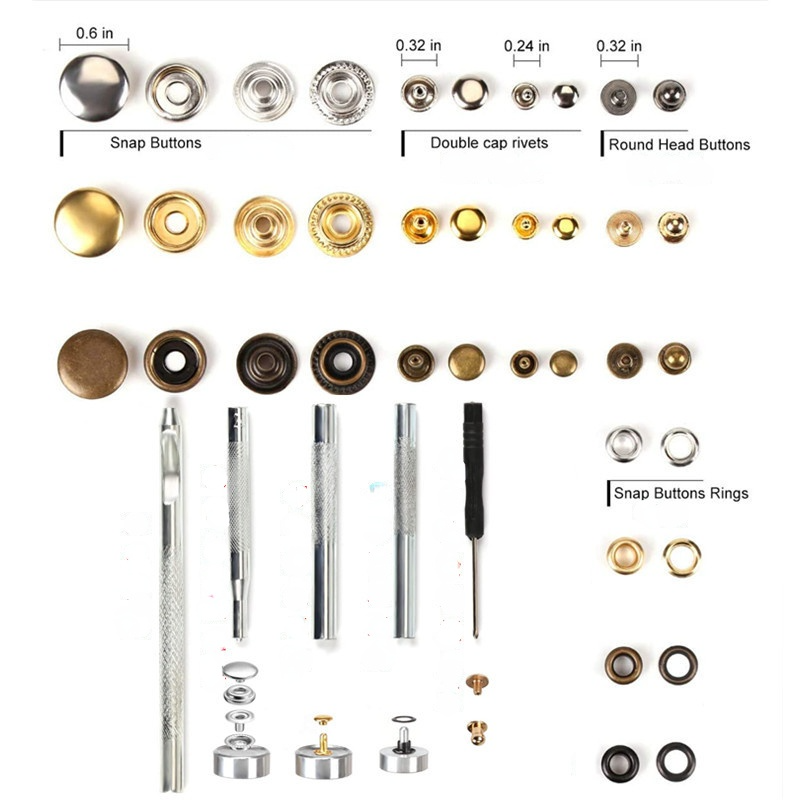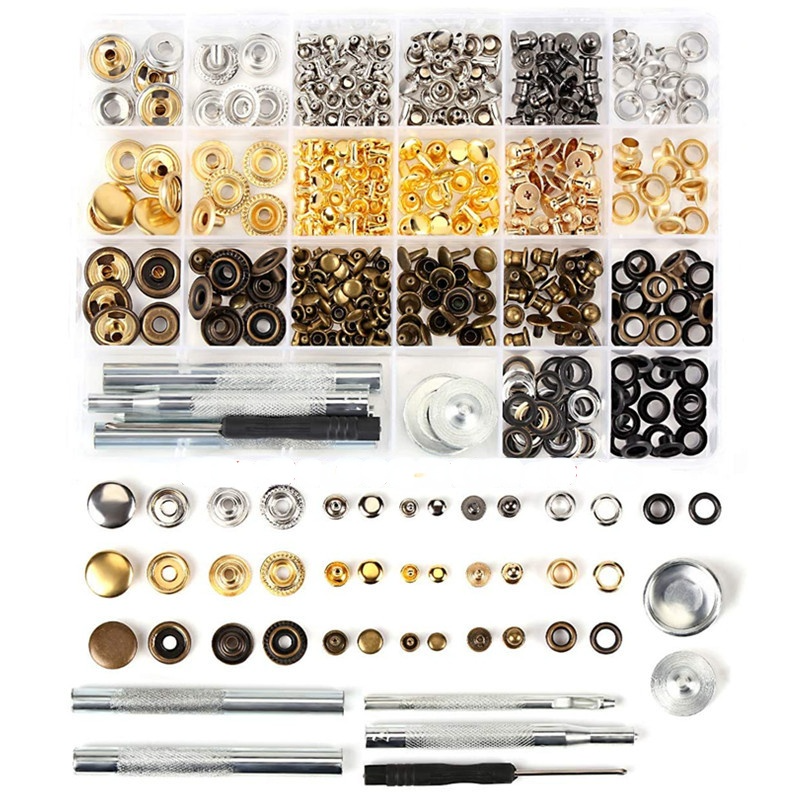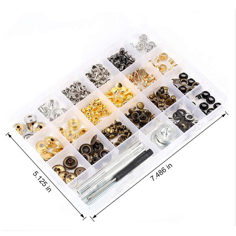 Kit de 364 boutons-pression ronds en fer plaqué sans plomb, avec outil d'installation pour rivets à tête de moine et trous d'aération, en boîte – Vente chaude