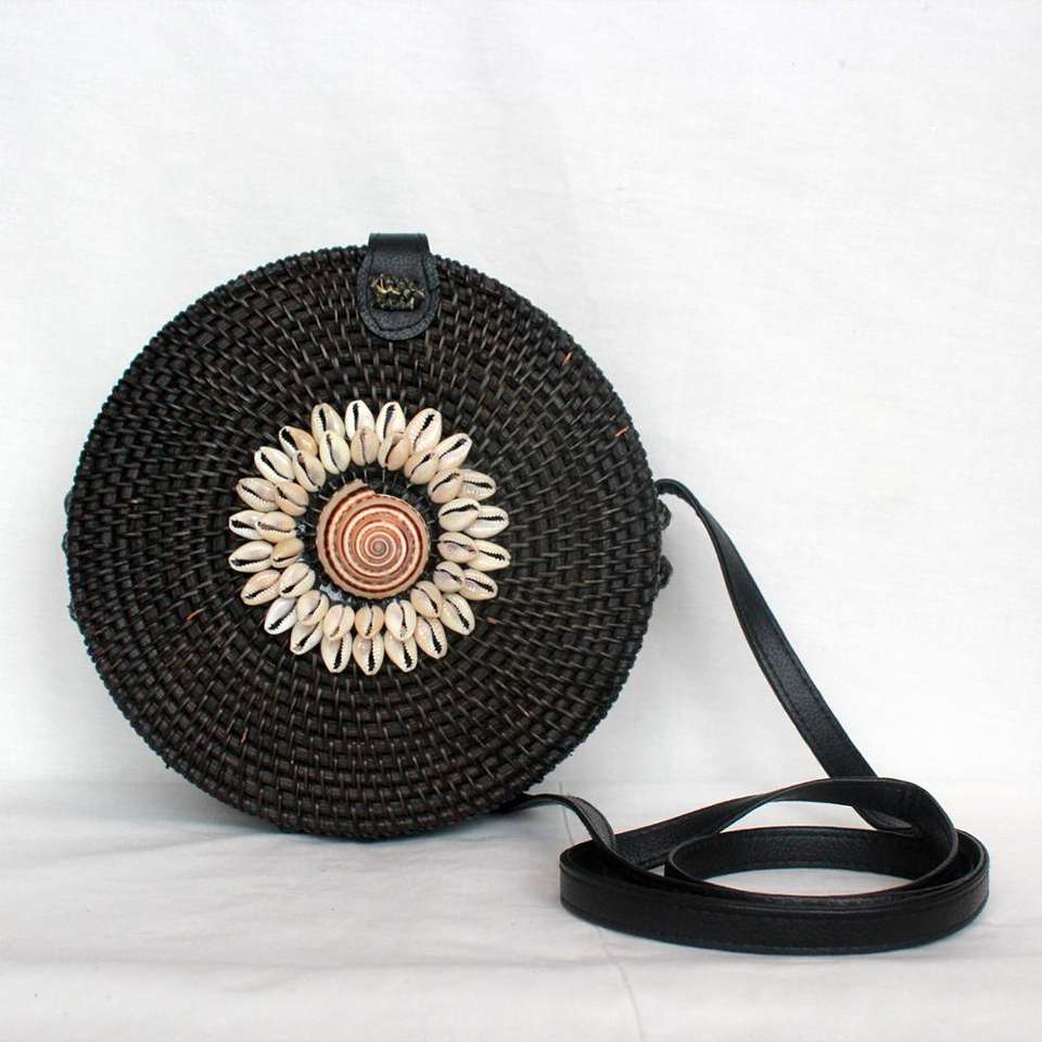 TENDANCE CHAUDE! Sac rond en rotin avec coquille, sac en rotin avec poignée en cuir, sac à main d'été, sac à bandoulière