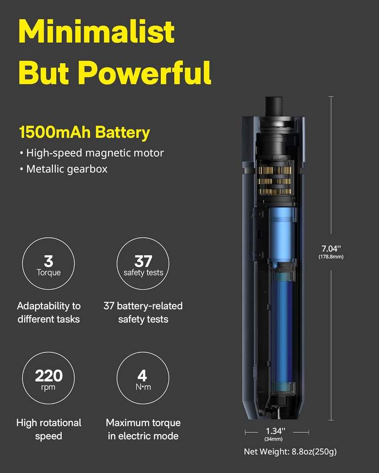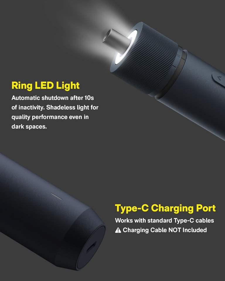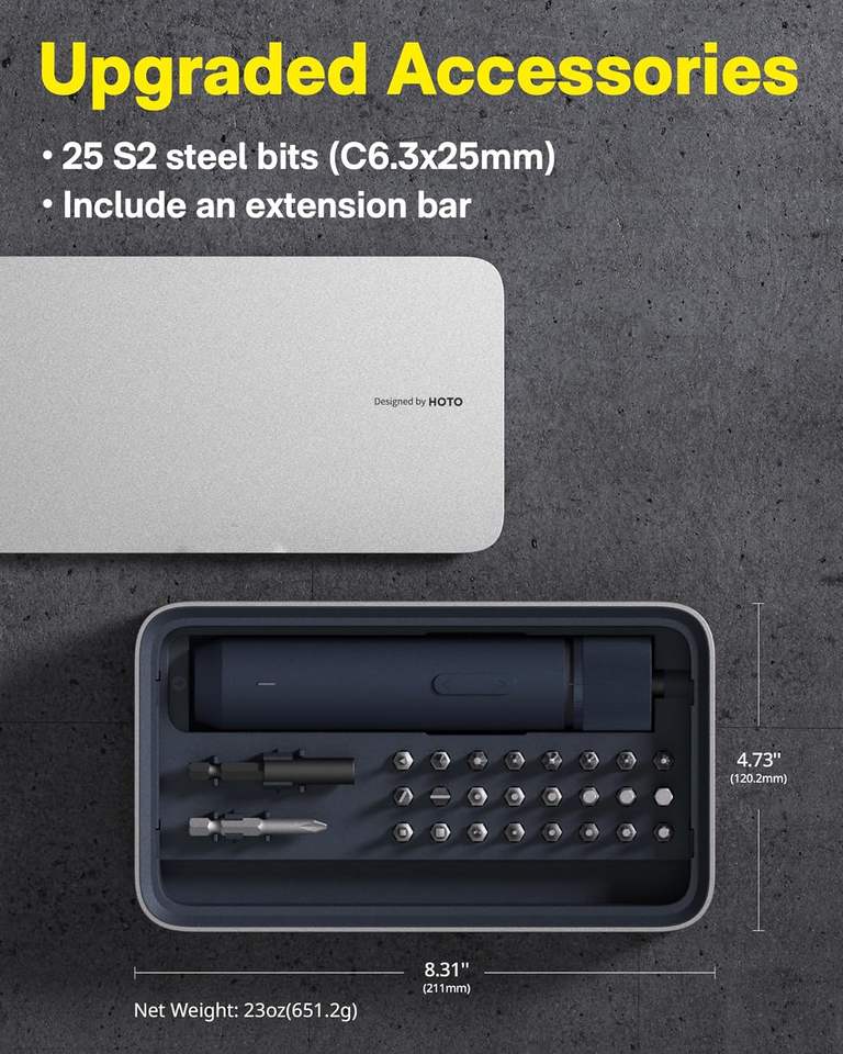 HOTO Kit de tournevis électrique sans fil amélioré avec lumière LED, 25 embouts hexagonaux de 1/4'' magnétiques et rechargeables, pour l'assemblage et la réparation de meubles