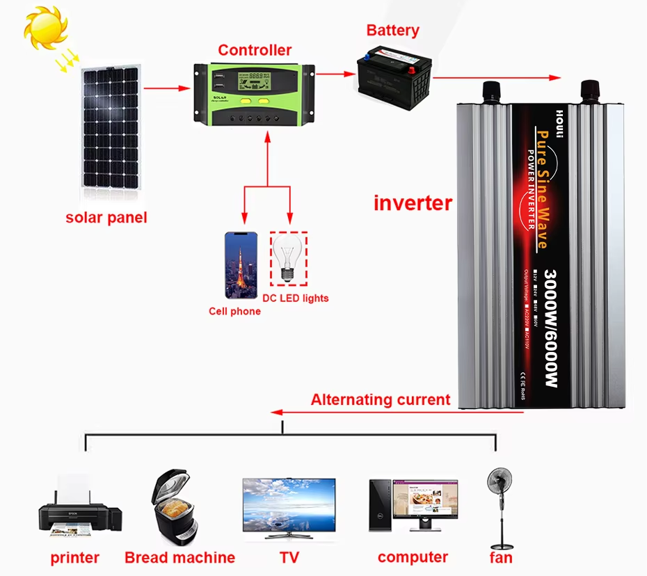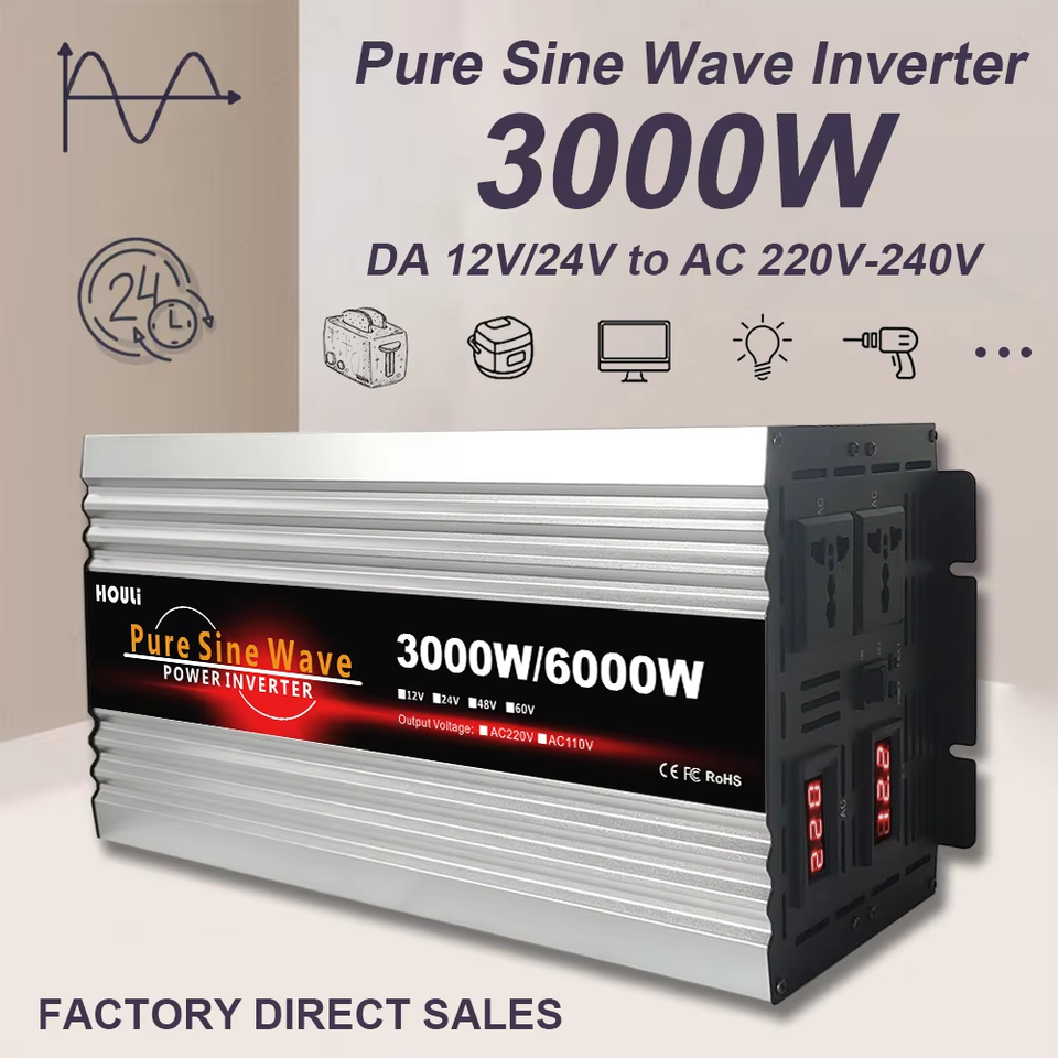 HOULI Inverseur de fréquence 12V vers 24V solaire 6000W 48 Volts DC 220 Volts Onduleur à onde sinusoïdale pure
