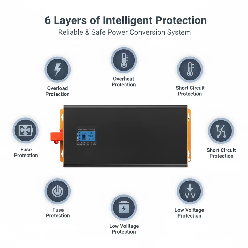 Convertisseur d'ondes sinusoïdales pures HOULI 2000W 12v 24v vers 110v AC ETL | Invertisseur 12v 110v 2000w